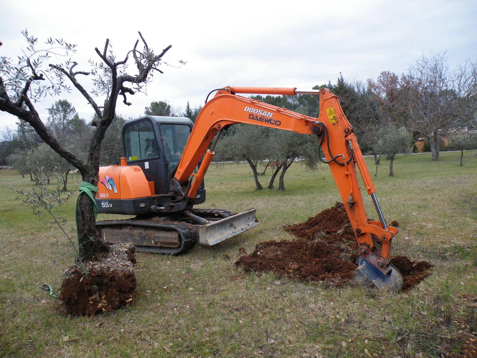 Le 20.03.2010, nous déplaçons les oliviers sous l'emprise des constructions, vers des emplacements judicieux, en reconstituant la trame et les alignements d'origine, là où il en manque :